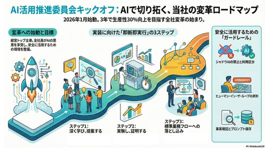 三井ホーム株式会社(本社:東京都江東区、代表取締役社長:野島秀敏、以下「当社」)は、2026年2月1日付で「生成AI利活用管理規程」を制定し、あわせて専務執行役員の仲田裕一を委員長とし「AI活用推進委員会」を発足したことをお知らせいたします。 本規程は、住宅業界の共通課題である「担い手不足」に対応するべく、業務効率化や価値創造に不可欠な役割を果たすAIを従業員が安心して活用するための「ガードレール」です。各々がより付加価値の高い業務に注力できる環境を整える基盤をつくり、AI活用を加速させることで、2028年度末までに一日一人当たり2時間(全社員で年間120万時間)創出することを目指してまいります。これは新たに生まれる付加価値と併せて30%の生産性向上に相当します。