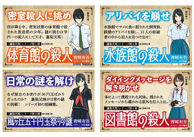 創元推理文庫から刊行されている〈裏染天馬〉シリーズ作品を、オリジナルミニPOPや特製フリーペーパーとともに一部書店で展開いたします。フリーペーパーは、シリーズの登場人物紹介や青崎有吾さんのお薦めミステリをコメント付きで紹介するなど、読み応えのある内容になっています。