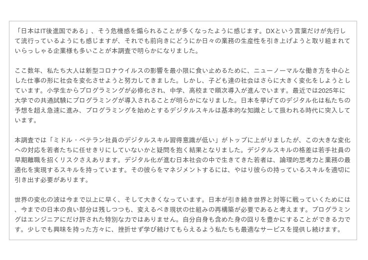 Progateは、プログラミングで人生の可能性を広げられる人を世界中に増やすことを目指して、今後もプログラミング学習サービスを展開してまいります。