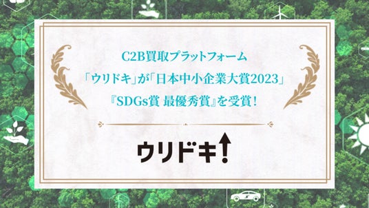 C2B買取プラットフォームを運営するウリドキ株式会社(本社:東京都新宿区、代表取締役:木暮康雄)は、中小企業や社員の創意工夫や挑戦にスポットライトを当てる国内最大級の中小企業の祭典「日本中小企業大賞 2023」において、『SDGs賞 最優秀賞』を受賞いたしました。