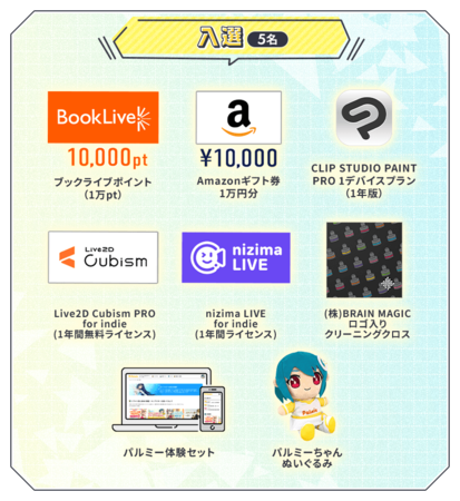 株式会社パルミー(所在地:東京都港区、代表取締役:伊藤貴広、以下パルミー)は、本日2月1日(水)14時00分より「祝・パルミーくん誕生!パルミーファンアートコンテスト」を開催いたします。受賞者には豪華賞品をプレゼントいたしますので、奮ってご応募ください。