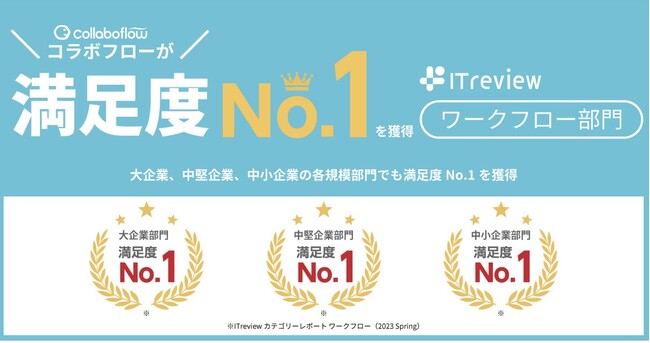 2023年3月までに掲載されたレビューを元に「ITreview カテゴリーレポート 2023 Spring」が発表され、コラボフローがワークフロー部門の8期連続「顧客満足度No.1」に選ばれました。