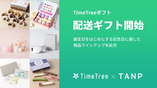 カレンダーシェアアプリ「TimeTree」を運営する株式会社TimeTree(本社:東京都新宿区、代表取締役社長:深川 泰斗、以下TimeTree)は、TimeTreeのアプリ内で商品の購入・プレゼントができるギフトサービス「TimeTreeギフト」において、日本最大級のギフト専門通販「TANP」と連携し、指定した住所宛にプレゼントが届く「配送ギフト」の提供を開始しました。