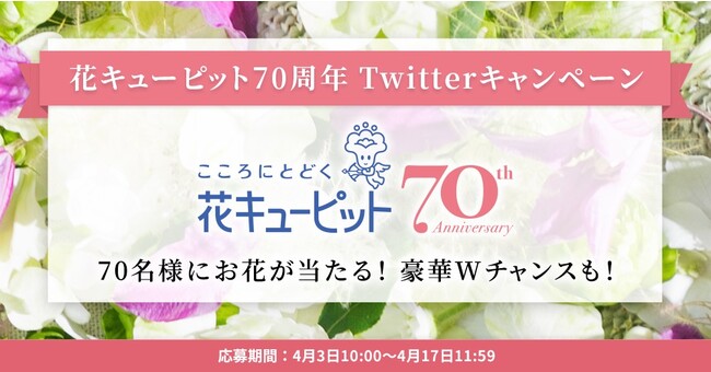 花キューピット株式会社所在地:東京都品川区 代表取締役:吉川 登)は、「花キューピット」が2023年4月13日に70周年を迎えることを記念して、皆さまへの感謝の気持ちを込めてTwitterキャンペーンを実施いたします。