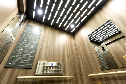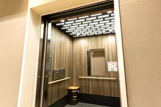 エレベーターのかご内の様子。LED照明で明るい雰囲気を醸します。