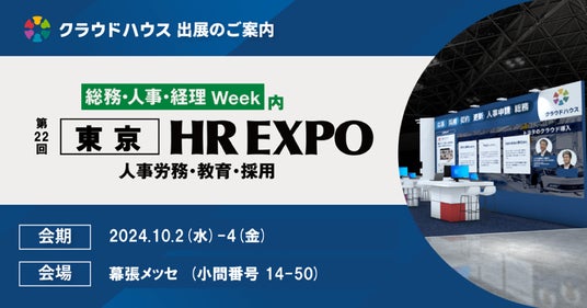 大企業向け人事労務クラウド『クラウドハウス労務』を運営する株式会社Techouse(本社所在地:東京都港区、代表取締役社長:礒邉 基之)は、2024年10月2日(水)から4日(金)まで開催される「第22回総務・人事・経理Week 秋」内の「東京 HR EXPO」に出展いたします。