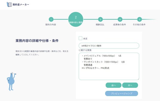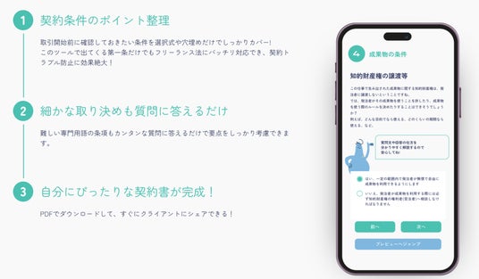 自分の名前で仕事をしたい人のための非営利支援団体一般社団法人プロフェッショナル&パラレルキャリア・フリーランス協会 (東京都中央区、代表理事:平田麻莉、以下「フリーランス協会」)は、スマホやPCで簡単な質問に答えるだけで、自分にぴったりな契約書を無料で作成できる新サービス「契約書メーカー」(https://lp.freelance-jp.org/keiyakusho-maker/)を、本日より提供開始します。