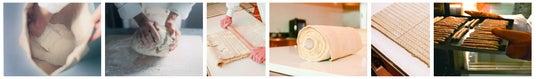 coneriのスティックパイに使用するのは、 国産の小麦粉や大豆を原料とした厳選された粉を独自にブレンドした“こねり粉 ”。パイ生地作りの要の「こねる 」「折る 」「伸ばす 」の工程は、熟練のパイ職人による手わざでこそ成せる業。
