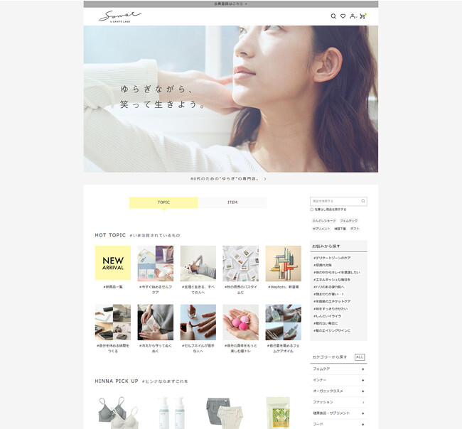 株式会社エル・ローズ(本社:福井県福井市)が運営するライフスタイルショップ「SANTE LABO(サンテラボ)」による初のECコンセプトショップ、“40代のゆらぎの専門店”「sowat(ソワ)by SANTE LABO」が2023年11月7日(火)にグランドオープンいたしました。