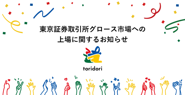 株式会社トリドリ(本社:東京都渋谷区、代表取締役社長:中山貴之)は、2022年12月19日をもちまして、東京証券取引所グロース市場(証券コード:9337)へ新規上場いたしました。