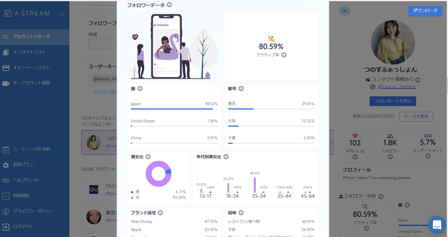この度、A streamはグルメに特化したインフルエンサーを「フォロワー数」「フォロワー成長率」「エンゲージメント率」などでリアルタイムにランキングを表示する機能をアップデートしました。