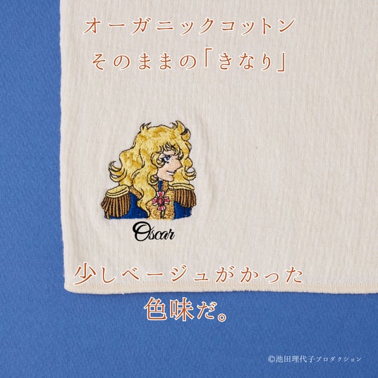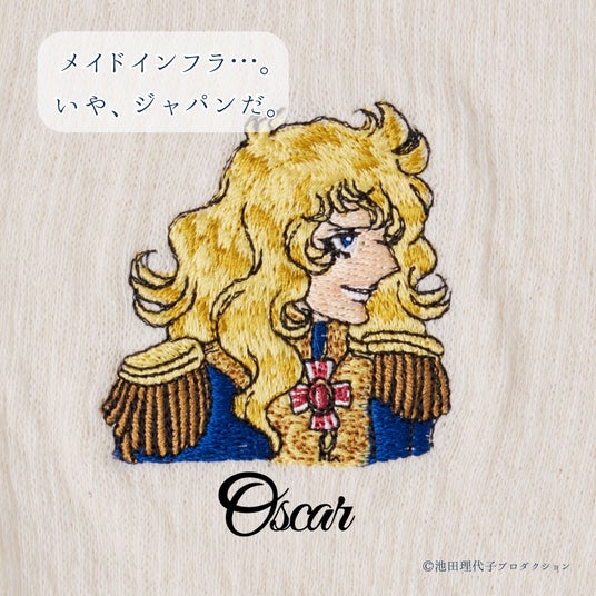 刺繍はオスカルのブロンドの髪、隊長服の隅々まで美しく再現。