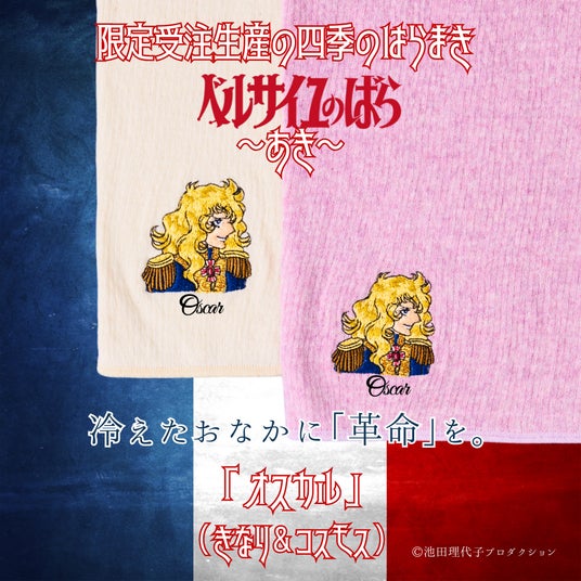 「体感温度を2度上げる」がコンセプトのゲンナイ製薬のブランド【プラスニド:千代田区、代表:上山永生】は【限定受注生産の四季のはらまき ベルサイユのばら】 の受注を7月22日より開始します。