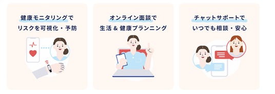 ウェアラブルデバイス、オンライン面談、チャットサポートを組み合わせ、妊娠期の従業員一人ひとりに寄り添った支援を行います。