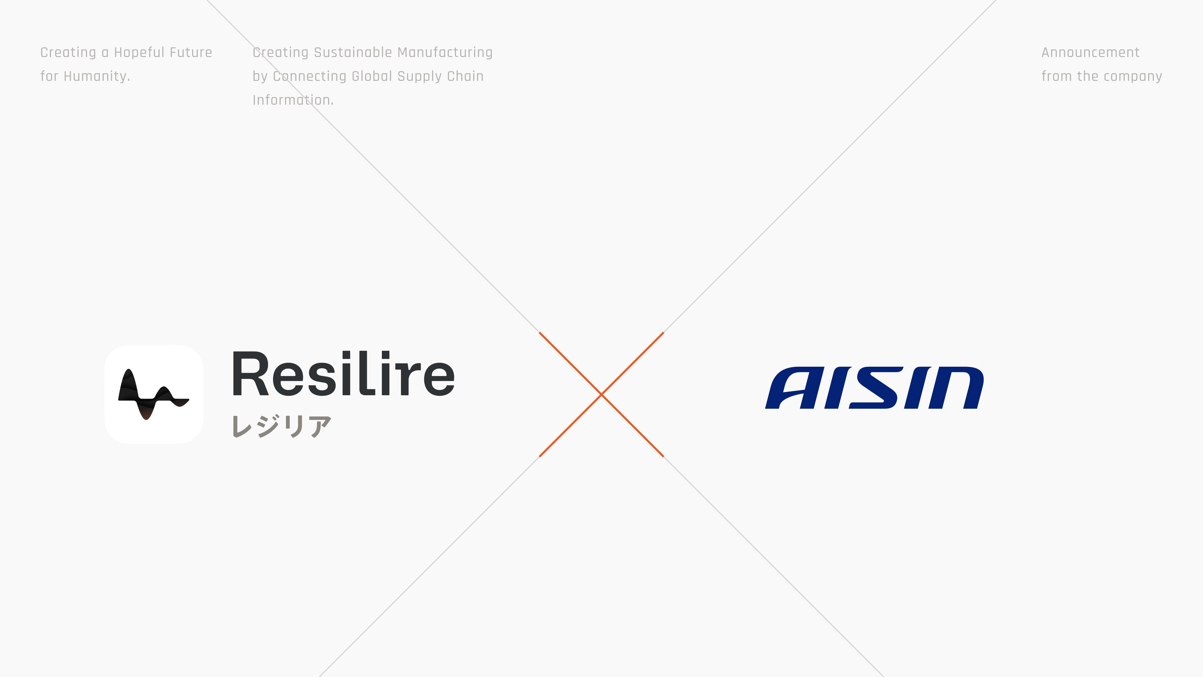 株式会社Resilire(本社:東京都港区、代表取締役CEO:津田 裕大)は、当社が開発・提供するサプライチェーンリスク管理クラウドサービス「Resilire(レジリア)」について、株式会社アイシン(本社:愛知県刈谷市、取締役社長:吉田 守孝、以下「アイシン」)が導入したことをお知らせします。