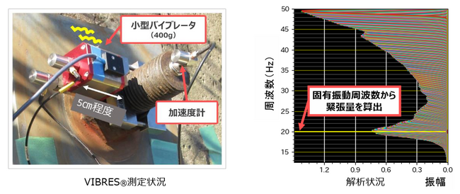 VIBRES(R)は、当社が中日本高速道路株式会社 (名古屋市中区、代表取締役社長 CEO:小室俊二)のグループ会社である中日本ハイウェイ・エンジニアリング名古屋株式会社(名古屋市中区、代表取締役社長:湯川 保之)、および国立大学法人東海国立大学機構 岐阜大学(岐阜県岐阜市、学長:吉田和弘)とともに共同開発した、グラウンドアンカー※の緊張力を効率的かつ安全に測定する新技術です。