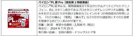 医療用と同じ有効成分を同量配合※1の「パイロン(R)PL錠Pro」より新容量品36錠が新登場!