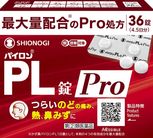 ヘルスケア価値の提供を通じて社会に貢献するシオノギヘルスケア株式会社(本社:大阪府大阪市 代表取締役社長:吉本 悟、以下、シオノギヘルスケア)は、医療用と同じ有効成分を同量配合※1したかぜ薬「パイロン(R)PL錠Pro(指定第2類医薬品)」の新容量品36錠を、7月25日より発売いたします。