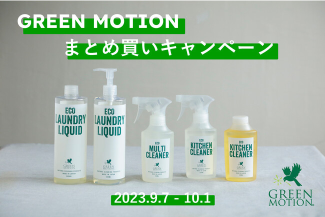 10月2日(月)に価格改定を控えたGREEN MOTIONのクリーナーシリーズのまとめ買いキャンペーンを実施いたします。「まとめ買い商品」はカートにてお支払いの際、キャンペーン限定のクーポンをご使用いただくことで5~10%OFFの価格にてお買い求めいただけます。すでにご使用いただいている方はもちろん、はじめて手に取っていただく方にもおすすめなお得なキャンペーンとなっております。