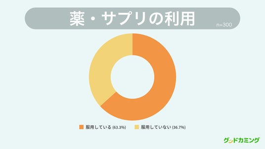 - 症状がある回答者のうち約73.9%は薬・サプリを使用