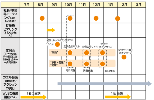 株式会社ワーク・ライフバランスが提供する働き方改革コンサルティングは、1 期 8 か月にわたり、顧客企業