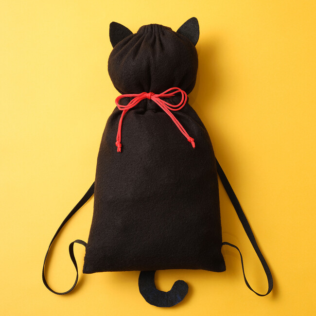 猫耳としっぽがかわいい黒ネコの袋の中に、グミやビスケット、コーンスナックなど8種のお菓子がギュッと詰まっています。背負えるナップサック型なので仮装アイテムにもぴったり!