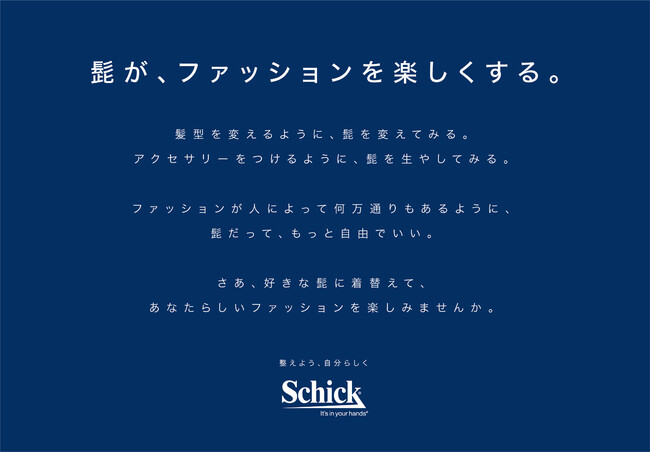 以上の結果より、シックは男性のヒゲを“髪形やアクセサリーと同じファッションアイテムの1つ”として自由に楽しんでほしいと考え、自分らしいヒゲスタイルを見つけていただく本施策を実施いたします。