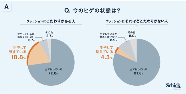 ■ファッションにこだわりがある人は、そうでない人に比べて4倍以上(※3)が「ヒゲを生やして整えている」