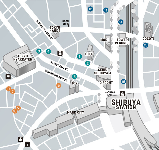 6.クロサワ楽器 G-CLUB SHIBUYA 7.SHIBUYA HOTEL EN1 8.SHIBUYA HOTEL EN2 9.O-crest