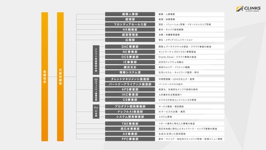 AIサービスやシステム開発を手掛けるCLINKS株式会社(本社:東京都中央区、代表取締役:河原浩介)は、2026年4月1日(水)付で組織改編を実施いたしましたので、お知らせいたします。