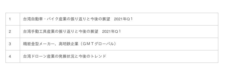 <台湾自動車・バイク産業の振り返りと今後の展望 2021年Q1>