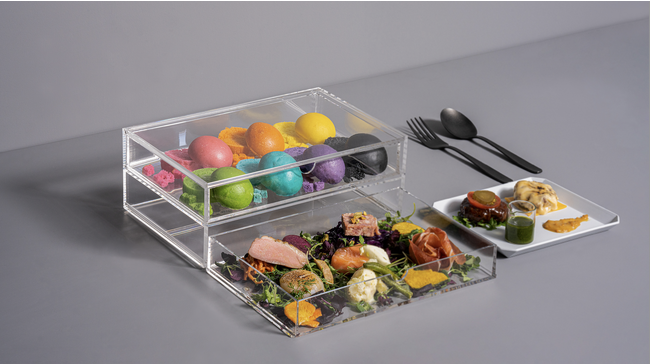 ワンハンドで楽しめるよう、カップにミニバーガーとポテトをセットしました。