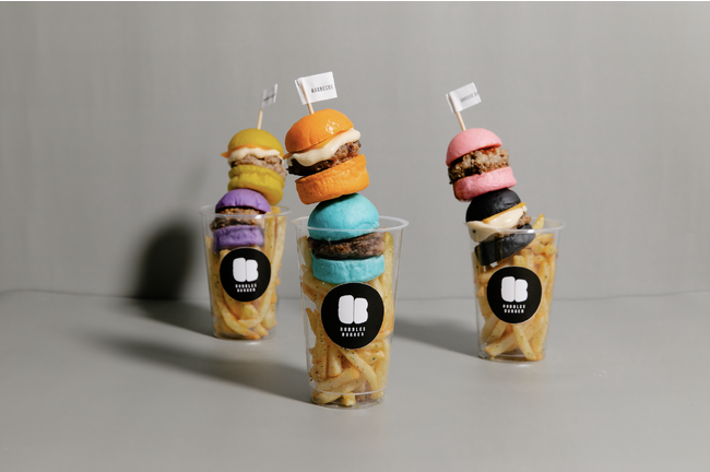 意外性のある素材と見た目のインパクトで、Z世代を中心に話題を集めているバブルスバーガー。植物由来の7色(※)のカラフルバンズに、お好みの具材とソースを挟んで、自分好みのオリジナルバーガーをお作りいただけます。最近では、自分の「推し」のカラーバンズと写真を撮るなどSNSでも話題です。