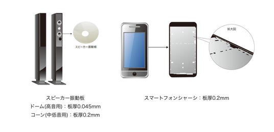 マグネシウム合金の大きな特長である振動吸収性を活かした製品設計が可能です。この特性により、音響機器のスピーカー振動板や、モバイル端末機のシャーシなどに採用されており、音質の向上や製品の安定性に寄与しています。(写真2参照)