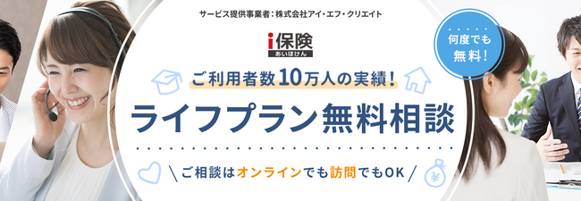 サービスを提供する株式会社アイ・エフ・クリエイトの保険の見直しサービスをご利用された方は延べ10万人を超え、経験豊富で丁寧なファイナンシャルプランナーがご相談を承ります。ぜひこの機会にご利用ください。