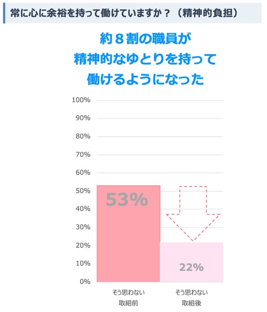 - 成果:全職員が休憩を取れるようになり、身体的な負担なく働けるようになった