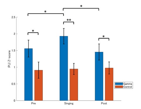 以上の結果により、ガンマ波刺激と、歌唱による神経可塑性の促進効果や認知能力向上効果(*4)を組み合わせることで、ガンマ波の誘発により高い影響を与える可能性が示唆されます。