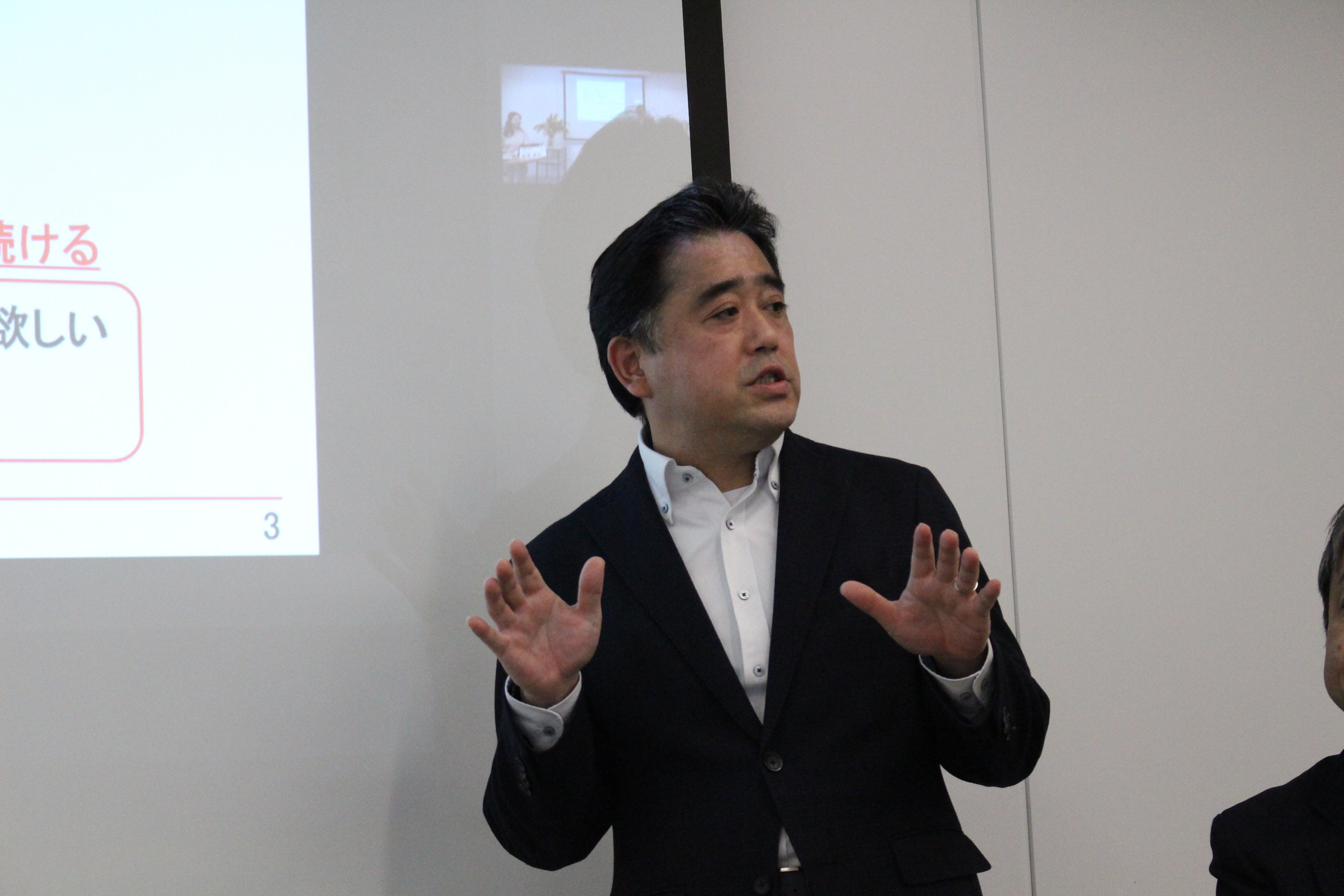 代表取締役 社長執行役員の森久保哲司と、上席執行役員(管理管掌)の松澤靖より会社が目指すダイバーシティの未来像について講話を行いました。また、社員からの質問に答えるQ&Aセッションでは、会社が目指す組織作りや社員に求める役割などについての質疑応答がありました。