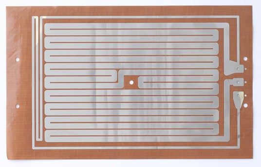 abien独自開発のフィルム状ヒーター。まるで紙のように極薄なだけでなく、熱源が高密度に引かれていることが特徴。加熱ムラの軽減や、熱効率の向上などに寄与しています。
