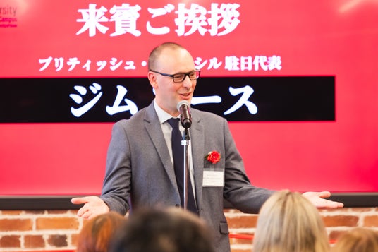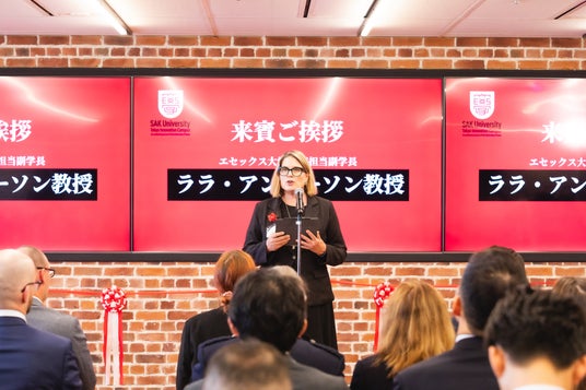 エセックス大学副学長が来日し、齋藤健衆議院議員らゲストが参列 元サッカー日本代表・吉田麻也選手からお祝いのビデオメッセージも