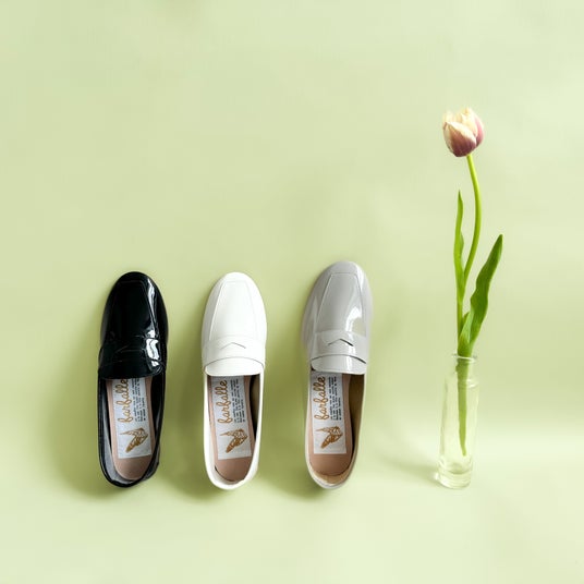 ローファータイプ、スクエアトゥのギャザーバレエ、ラウンドトゥなど形のバリエーション、エナメル、メタル、撥水などさまざまな素材、カラーなどが揃っています。