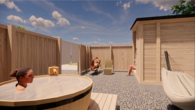 ■資金の用途 「SEN.RETREAT TAKAHARA」にサウナをつくるための材料・人件費