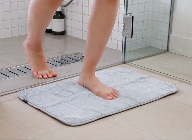 お風呂上がりの足に付いた水滴を、踏むだけでサッと吸水してくれます。