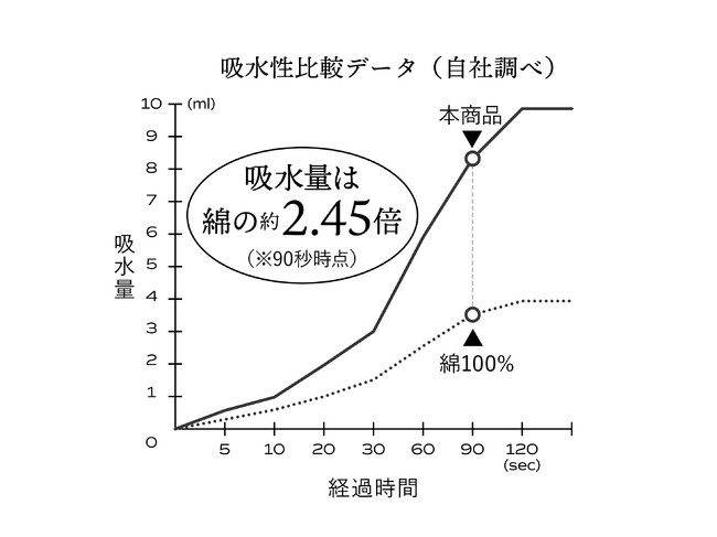 綿のバスマットと吸水量を比較してみると、なんと同じ時間内で2倍以上の水分を吸収するという結果に。