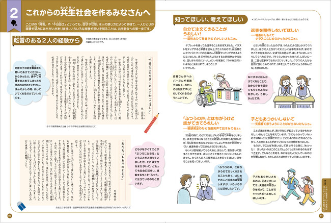 ことばの検査や支援、読み書きが苦手な落語家の柳家花緑さんのエピソードなどのコラムや、権利や制度、さらに学びを深めるための情報をまとめた巻末資料も充実!