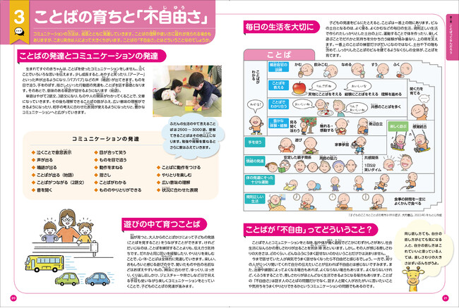 ことばの不自由さ/障害とはなにか、どうすれば不自由や障害を乗り越えられるのか、当事者のくらしのようす、日常を支えるグッズやサービス、リハビリテーションの様子、当事者からのメッセージなど、ことばにかかわる障害や諸問題について多元的な情報を凝縮しました。