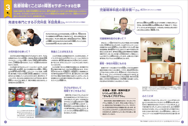 言語聴覚士、学校の先生、小児科医、児童精神科医、そして医療チームとして、ことばの不自由な子どもにかかわる作業療法士や理学療法士を取材しました。