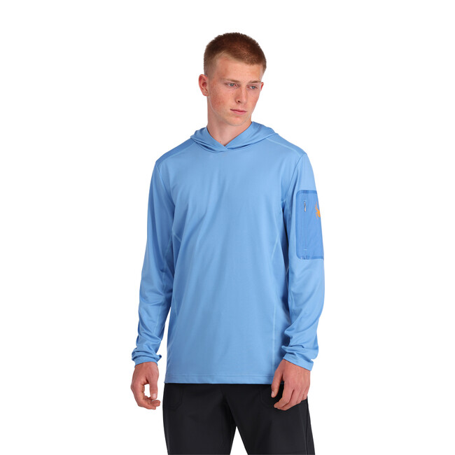 内側に体温を高い部分から低い部分へ移動させ熱を調節するEXO THERMOグラフェンプリントを施し多機能的でストレッチの効いた1着。リサイクル素材また、UPF 50+ サンプロテクションとさまざまなアウトドアシーンで活躍する。
