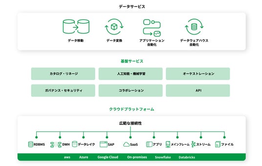 日本国内でも豊富な実績のあるQlik ReplicateやTalendをベースにしており、それらと同様の包括的なデータ統合機能をもっています。そこに最新のAIを統合してCDC、ETL、ELTをクラウドサービス化することで、今まで以上に導入しやすくなり、また信頼性の高いデータに基づいた企業の意思決定をサポートできるようになりました。