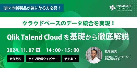 株式会社インサイトテクノロジー(本社所在地:東京都渋谷区、代表取締役社長 CEO:森田 俊哉、以下:インサイトテクノロジー)は、2024年10月1日よりQlik Technologies Inc.(本社:米国ペンシルベニア州、CEO:マイク・カポネ、以下:Qlik)の新製品「Qlik Talend Cloud」の提供を開始することをお知らせします。